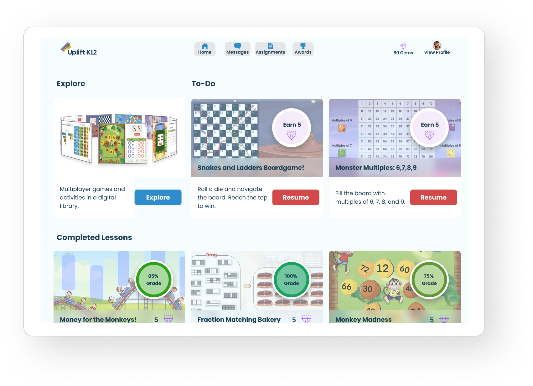 To motivate students, we incorporated a reward system where students can earn gems from their assignments and badges from their teachers. These tangible awards go a long way in incentivizing students to perform better than verbal feedback alone.