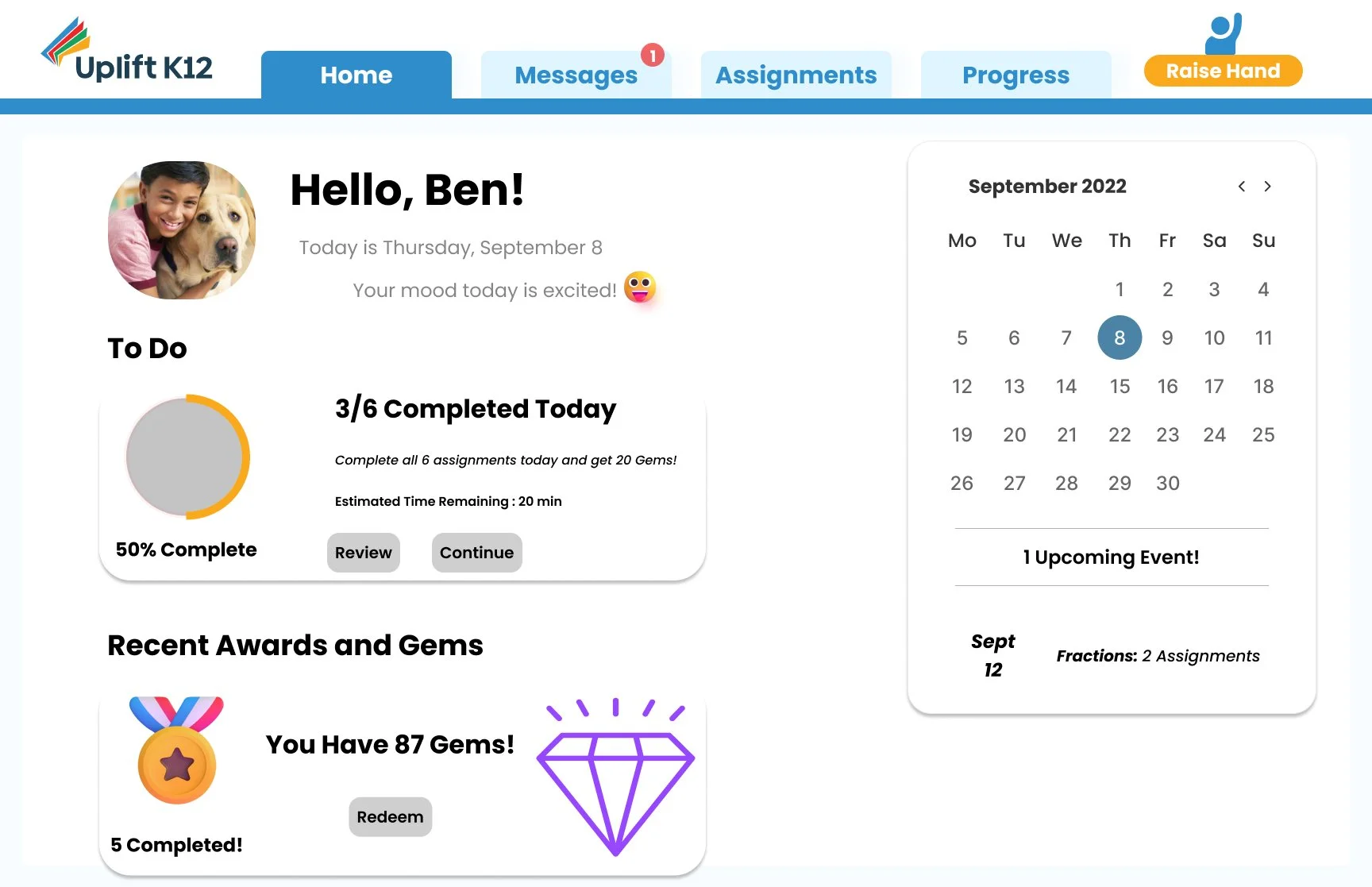 Create an intuitive student dashboard based on gamification and motivation insights. Our goal is to allow students to independently review their assignments, track their progress, and communicate with their teachers. By providing students with greater autonomy and accessibility, we aim to increase their engagement and motivation, resulting in improved learning outcomes.